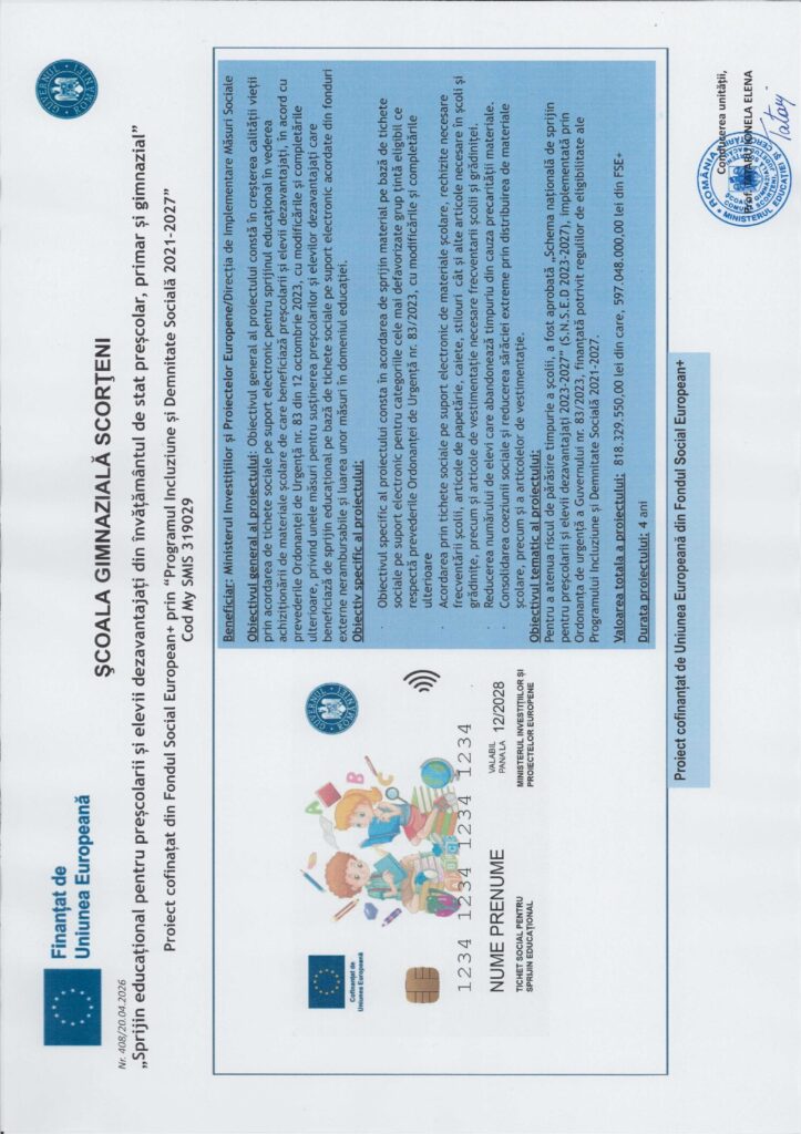 Majorarea bugetului proiectului „Sprijin educațional pentru preșcolarii și elevii dezavantajați din învățământul de stat preșcolar, primar și gimnazial”